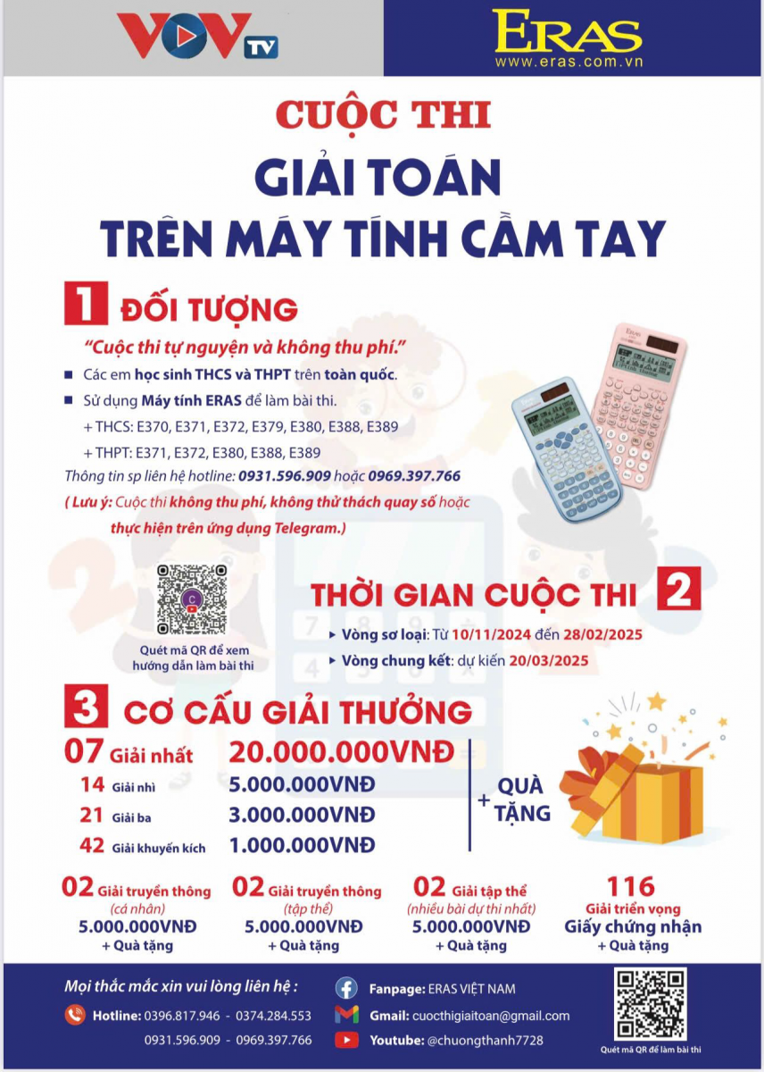 Hôm nay, ngày 10/11/2024, Cuộc thi Giải toán trên máy tính cầm tay Lần thứ Nhất năm 2024 chính thức được phát động. Vòng sơ loại của cuộc thi được thực hiện bằng hình thức online. Đây là một sân chơi trí tuệ dành cho học sinh khối THCS và THPT trên toàn quốc. Cuộc thi không chỉ giúp học sinh rèn luyện tư duy logic và kỹ năng tính toán mà còn kết nối nhà trường với các em học sinh trong hành trình chinh phục kiến thức toán học.